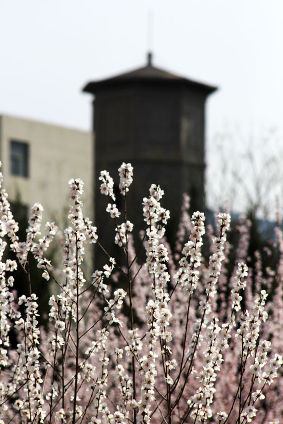 已经走过一甲子岁月的水塔,在如今高楼林立的师大中已被淹没。她在音乐学院、美术学院、舞蹈学院等诸多楼宇之间的夹缝中,显得那么低矮,那么微不足道。前些年,为了保留人们心中的这一念想,师大对水塔进行了重新修葺。整修后的水塔,一改往日破败衰落的旧颜,重新披上了往日的新装。青砖又那么鲜亮了,白灰勾缝的线条又清晰可见了。如今,水塔已不再现当年超群绝伦的身影,甚至难觅她的倩影,但她依然是西北师大最当之无愧的地标建筑,因为她早已植根于每个“师大人”的心中。