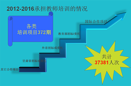 扶贫需强教,针对民族地区教师专业水平不高和缺乏双语教师的问题,五年来,教育学院共培训新疆、宁夏、甘肃甘南、临夏等少数民族地区教师7800多人。通过教师职后教育的方式,为西北的乡村学校和少数民族地区学校培养了大批适应基础教育改革的校长和教师,为提高乡村和民族地区教育质量,为精准扶贫扶智,促进城乡教育均衡发展做出了重要贡献,得到了国内外专家、地方教育行政部门和教育部的高度认可。