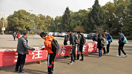 为普及消防知识,增强师生员工的消防安全意识和逃生自救能力,在全国第二十七届“119”消防宣传日来临之际,西北师大举行“关注消防、平安你我”主题消防安全宣传教育活动。