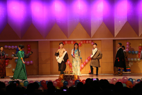 晚会用藏语三大方言和汉语、英语主持。来自西藏、青海、甘肃、四川、云南等省(区)的藏族学生,表演了《黎明的祈祷》《扎西秀》《喜相会》《白格尔》《幸福拉萨》《果热雅姆》等舞蹈节目,演唱了《迎宾酒歌》《金色花朵》《轮回》《慈祥的母亲》等歌曲,充分展示了藏族学生积极向上的精神风貌。