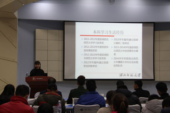 2016级专业型硕士研究生高永奇同学以《育人至上,体育与实践并重》为题,分享了已经作为一名教师的心路历程,鼓励同学们踏实认真,学以致用,努力投身到甘肃及西部地区的体育事业发展中。