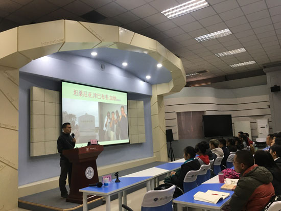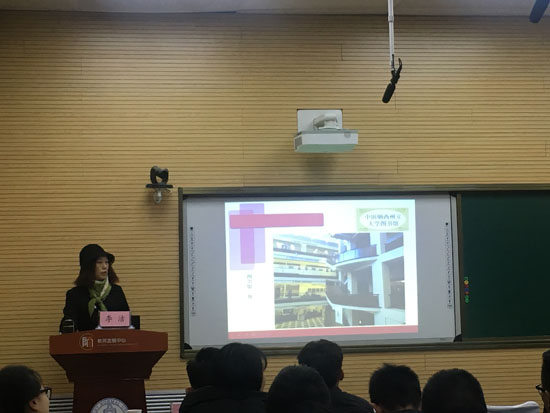 李洁教授介绍了在美国及中田纳西州立大学访学期间学习经历、公寓住宿、校园文化及业余生活情况,对比了中美双方在文化、学科等方面的差异性。