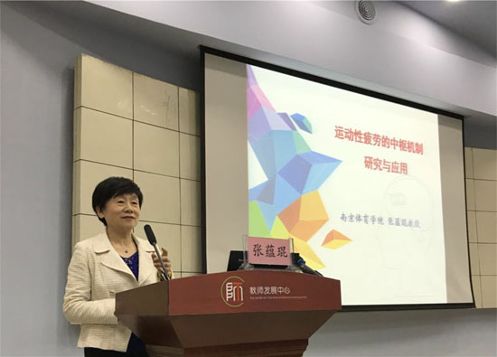 张蕴琨教授以《运动性疲劳的中枢机制研究与应用》为题,介绍了运动性疲劳作为复杂的生理现象,其发生机制主要包括外周机制与中枢机制,展示了影响运动性中枢疲劳发生发展及恢复过程的众多因素,重点阐述了不同运动状态下中枢神经递质的变化与中枢疲劳、环境温度及运动对中枢机能的影响,以及营养补充促进中枢疲劳恢复的作用与机制等方面的研究现状。