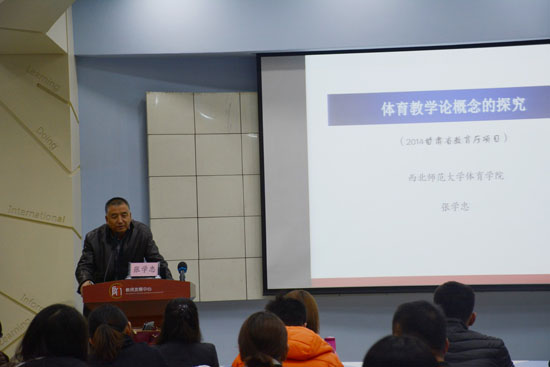 张学忠教授以《体育教学论概念的探究》为题,从哲学和现代教学论思想理论的角度出发,对体育教学论的概念、性质、对象和任务等基础理论以及探究体育教学论概念的意义等内容作了报告,并结合体育教学实践与现场师生展开了深入交流。