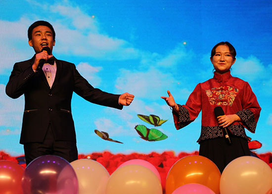 藏族传统舞《吉祥谣》、古典舞《采薇》、歌曲《蝴蝶泉边》《歌舞青春》《等我回家》、小品《欢喜密探》《那些年》、相声《你压力大吗》、《情歌对唱》、《等待》等精彩节目,展示了师生昂扬向上、积极进取的精神风貌。