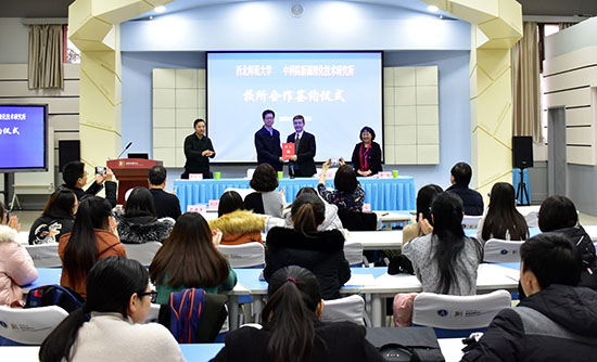 签约仪式后,阿吉艾克拜尔•艾萨作了题为《民族药药效物质基础及新药研发》的学术报告,并就相关问题与现场师生交流互动。