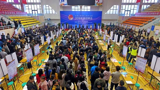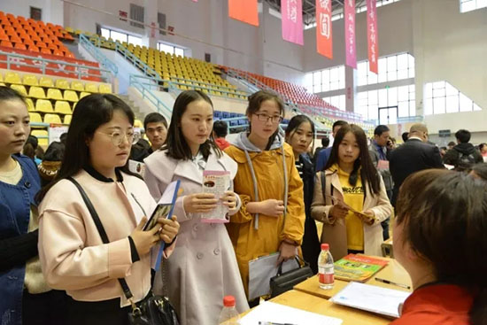 3月11日,由共青团甘肃省委、甘肃省人力资源和社会保障厅主办,西北师大承办的甘肃共青团助力脱贫攻坚2018新春招聘会在体育馆举行。