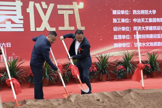 仪式上,与会领导共同为“西北师大兰天学生公寓新建项目”培土奠基。