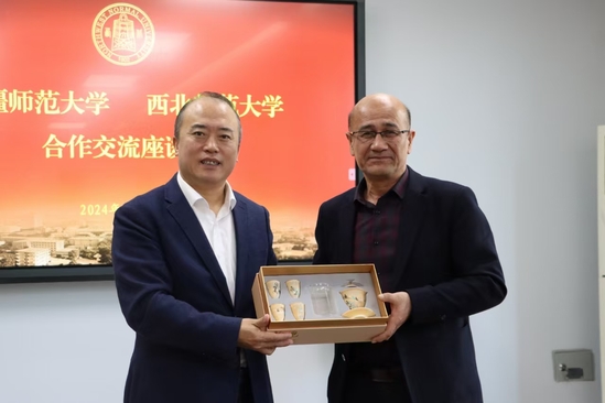 10月15日上午,新疆师范大学党委副书记、校长吾满江·艾力,党委常委、副校长陈彤一行来西北师大调研交流。西北师大校长、党委副书记王占仁出席座谈会并致辞,副校长张明军主持。新疆师范大学和西北师大相关部门负责人参加。