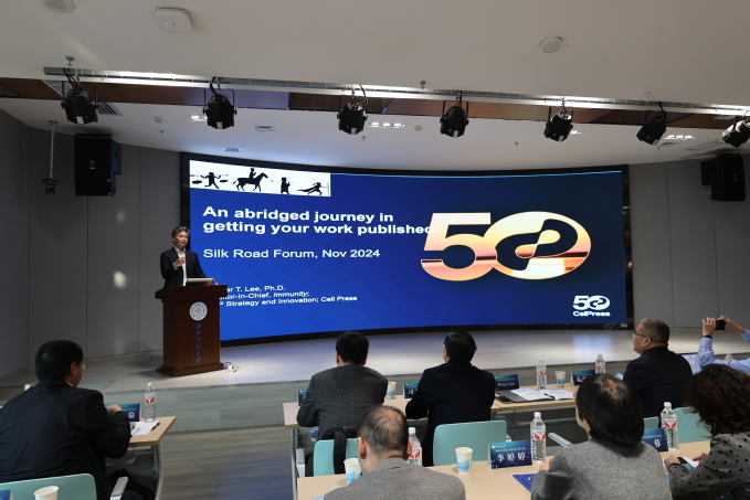 细胞出版社编辑战略与创新副总裁、Immunity期刊主编Peter Lee,中国科学院分子细胞科学卓越创新中心副主任许琛琦研究员,兰州大学研究生院执行院长张浩力教授,兰州大学生命科学学院院长侯岁稳教授,中国农业科学院兰州兽医研究所朱紫祥研究员分别作了题为《发表文章的简约之旅》《免疫受体信号机制与临床应用》《有机微纳发光材料》《植物蛋白磷酸酶1的功能与气孔发育》《非洲猪瘟病毒感染靶细胞的鉴定及亚单位疫苗免保护机制探究》的学术报告,为师生们呈现了顶尖的学术成果。与会师生与各位专家学者们就高水平研究成果产出与发表等问题进行了深入地交流讨论。
