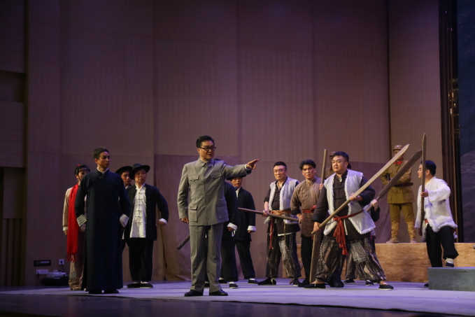 11月7日晚甘肃省陇剧院原创剧目《大河东流》在西北师大音乐厅精彩上演副校长王文昇出席活动,各学院师生代表400余人观看演出。