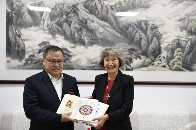 日前卡比利亚陶器捐赠者法籍索菲莫罗女士应邀来校开展了为期一周的访问交流,党委副书记王全进会见来访人员进行座谈交流。