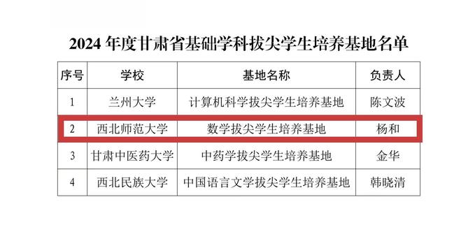 西北师大“数学拔尖学生培养基地”获批甘肃省基础学科拔尖学生培养基地
