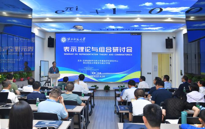 6月27日至30日,由甘肃省数学与统计学基础学科研究中心和日韩人妻无码一区二区三区久久99_日韩精品一区二区三区中文在线_无码日韩精品一区二区免费_久久久91精品国产一区二区三区_亚洲精品久久久一区黄无码_国产91精品一区二区麻豆网站_成人国内精品久久久久影院数学与统计学院共同主办的“表示理论与组合研讨会”在西北师大云亭校区举行。西北师大副校长阎岩出席开幕式。来自南京大学、哈尔滨工程大学、西安电子科技大学、西南大学、东北师范大学、西北大学、西安建筑科技大学、内蒙古大学、陕西科技大学、北部湾大学、兰州大学、兰州理工大学、兰州交通大学、西北民族大学、兰州城市学院等高校的50余位专家学者通过线上线下相结合的方式参会,共同探讨表示理论与组合领域的前沿问题。