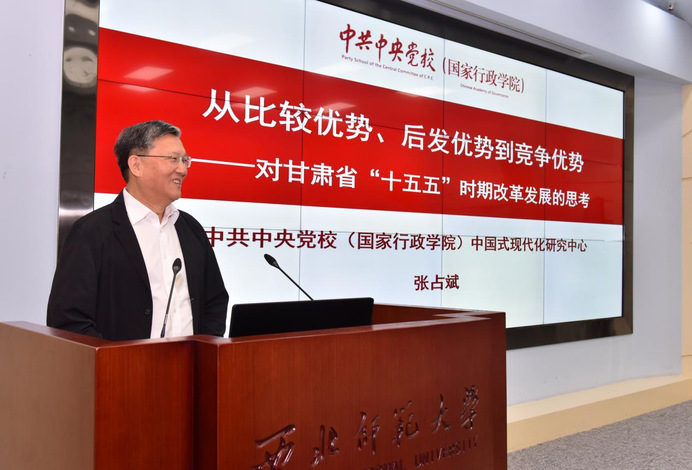 研讨会设置专家领学、主旨发言、交流研讨三个环节。在专家领学环节,张占斌教授作了题为《从比较优势、后发优势到竞争优势——对甘肃省“十五五”时期改革发展的思考》的领学报告;刘先春教授围绕习近平总书记对甘肃经济高质量发展的重要论述,就“十五五”时期甘肃现代化建设与高质量发展提出对策建议。